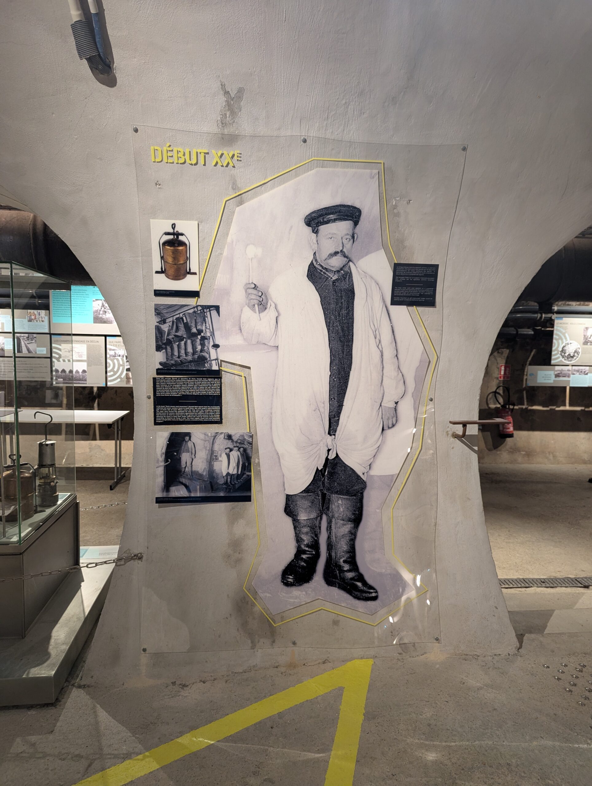 Dans le cadre des 50 ans, j’ai été chargé de concevoir une exposition sur le thème des « Habits des égoutiers ». J’ai assuré la direction artistique du projet, tout en respectant l’identité visuelle des 50 ans et les lignes directrices de la scénographie. J’ai également participé aux recherches muséographiques, en particulier sur les procédés de numérisation et la sélection de documents, en veillant à leur qualité et à leur pertinence.